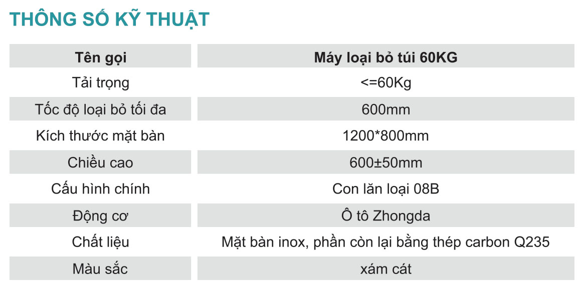 Chất lượng vượt trội: Máy Loại Bỏ Túi 60K của chúng tôi được sản xuất với công nghệ tiên tiến, đảm bảo độ bền cao và hiệu suất vượt trội trong suốt quá trình vận hành.