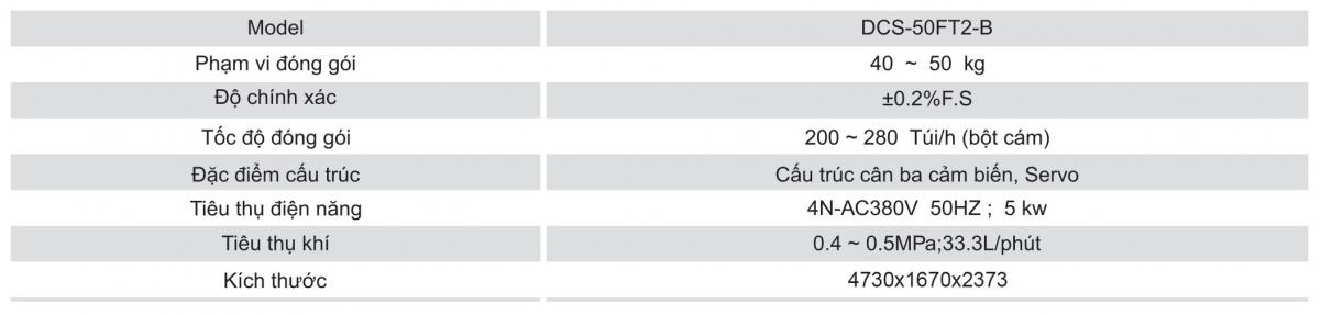 Hiệu suất làm việc vượt trội: Với khả năng vận hành liên tục và tốc độ đóng gói nhanh chóng (tối đa lên đến 50kg mỗi lần), máy DCS-50FT2-B giúp giảm thiểu thời gian sản xuất và nâng cao hiệu quả công việc.