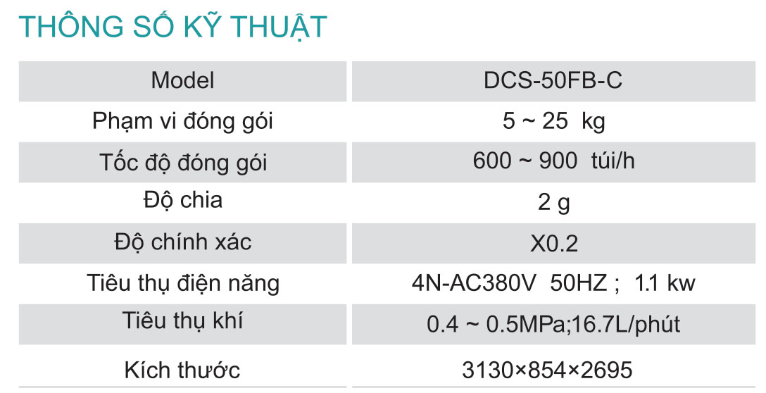 Máy cân đóng gói điện tử DCS-50FB-C là một sự đầu tư đáng giá cho mọi doanh nghiệp sản xuất và đóng gói, nhờ vào khả năng vận hành hiệu quả, tính chính xác cao và thiết kế dễ sử dụng. Hãy liên hệ với chúng tôi ngay hôm nay để được tư vấn và sở hữu chiếc máy cân đóng gói tối ưu cho công việc của bạn!