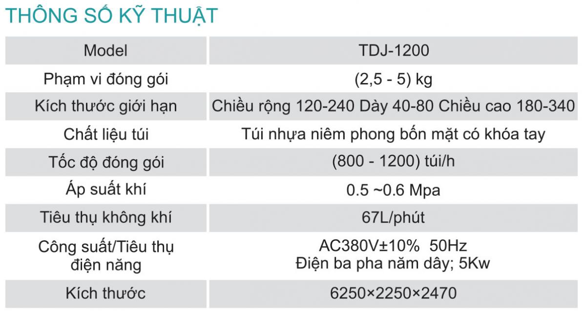 • Chất Lượng Đảm Bảo: Máy TDJ-1200 giúp bảo vệ sản phẩm tối ưu nhờ vào khả năng đóng gói chắc chắn, giúp kéo dài tuổi thọ sản phẩm và bảo quản chất lượng sản phẩm lâu dài.
